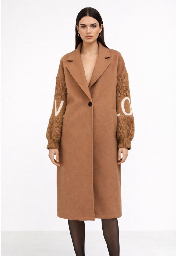 Abrigo camel con mangas de punto LOVE | Bluwer