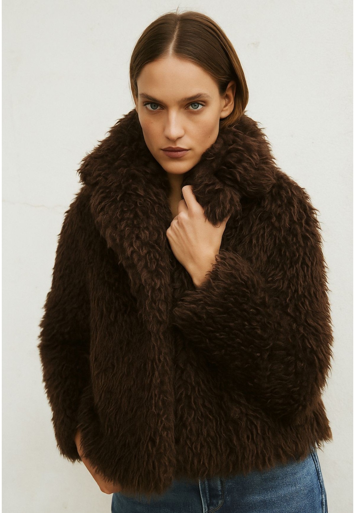 Abrigo de pelo rizado marrón para looks cálidos y con textura