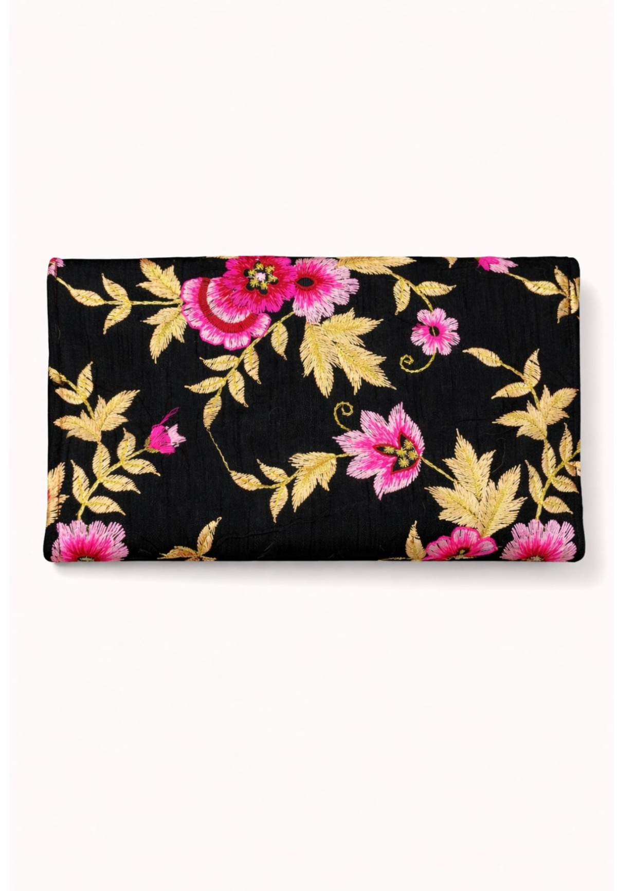 Clutch bordado a mano con flores · negro