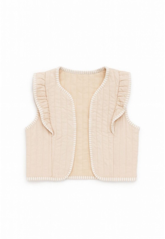 Chaleco acolchado beige con volante hombros mujer | Bluwer