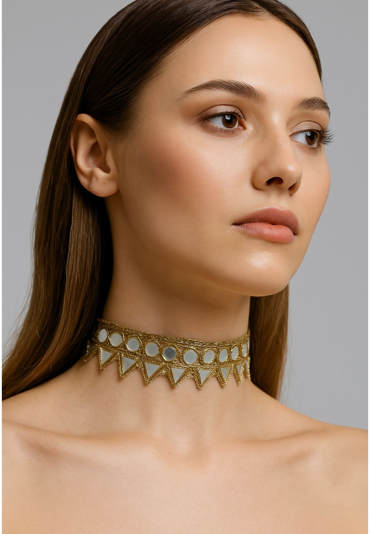 Diseñado para adaptarse tanto a looks casuales como más cuidados, este choker es la clave para elevar cualquier outfit sin esfuerzo. Aporta un punto de luz dorado que destaca especialmente con prendas lisas o de escote abierto.