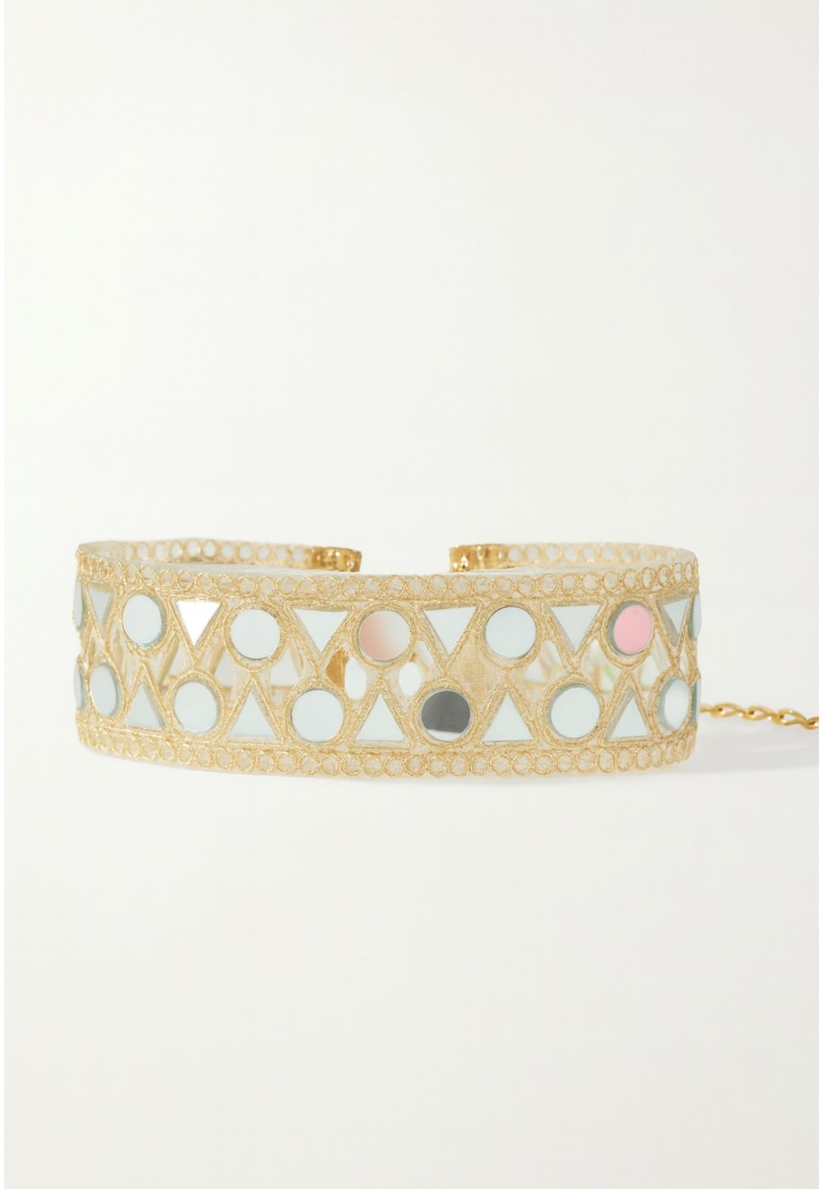 Choker dorado artesanal con espejitos de triángulos y círculos