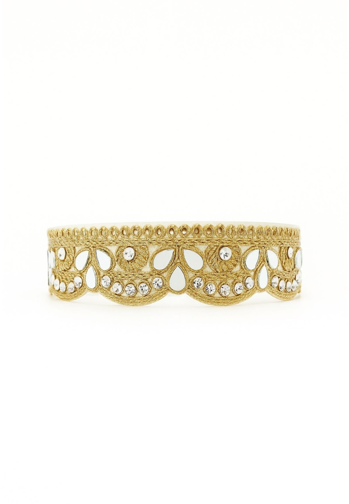 Este choker dorado con cristales es una pieza artesanal con carácter propio. Su diseño calado combina formas orgánicas y delicadas incrustaciones de cristal que captan la luz con cada movimiento.