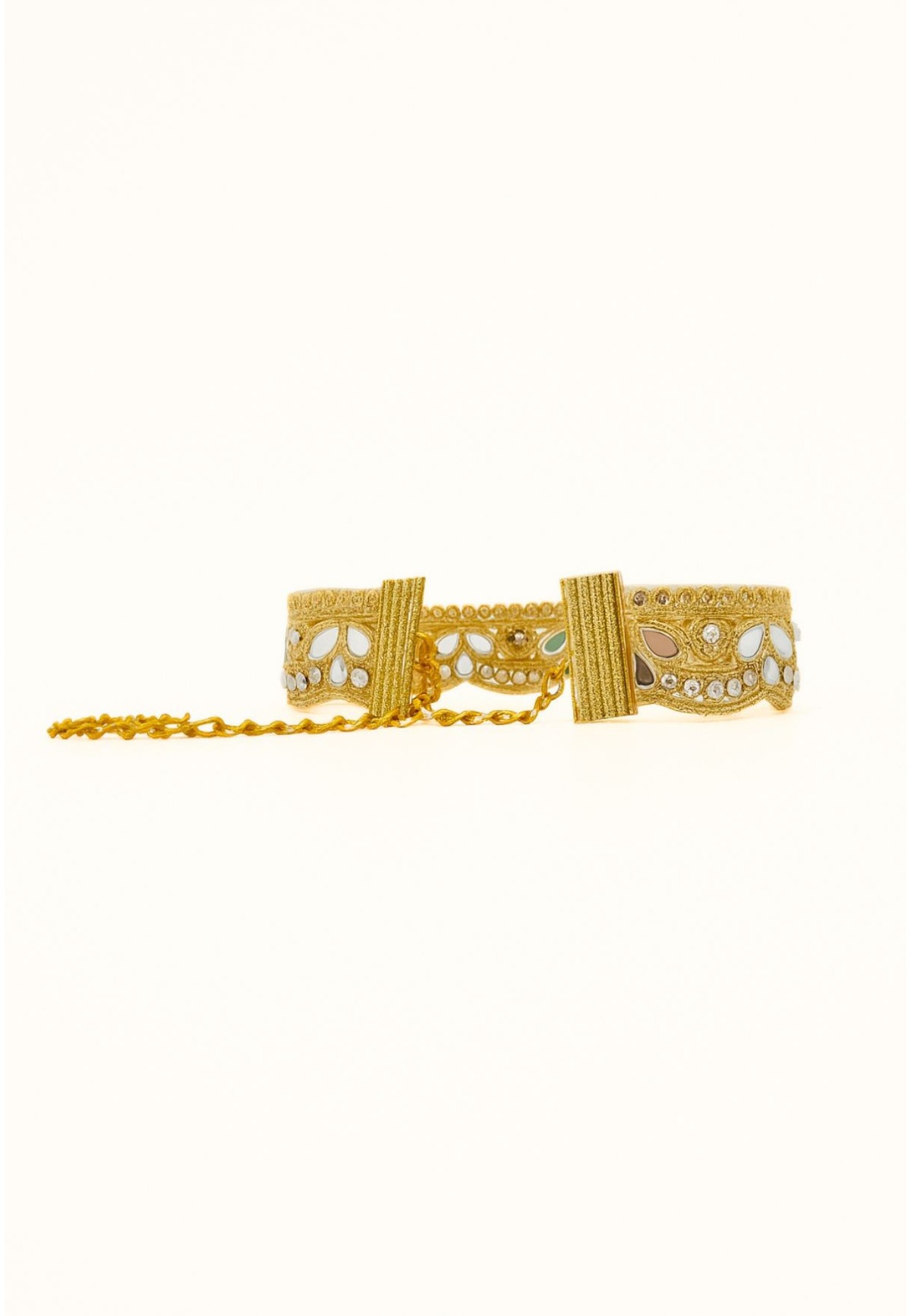 • Diseño artesanal y calado, elaborado con hilos dorados y pedrería incrustada
