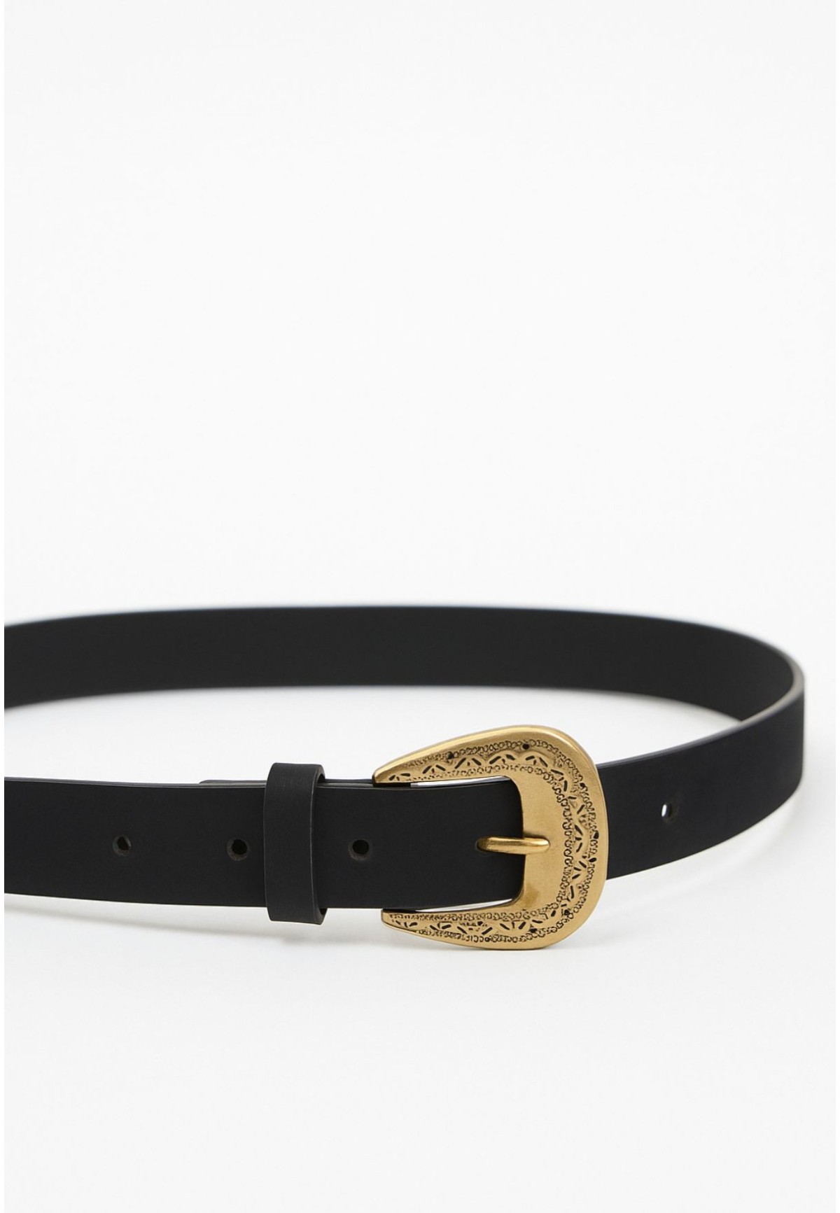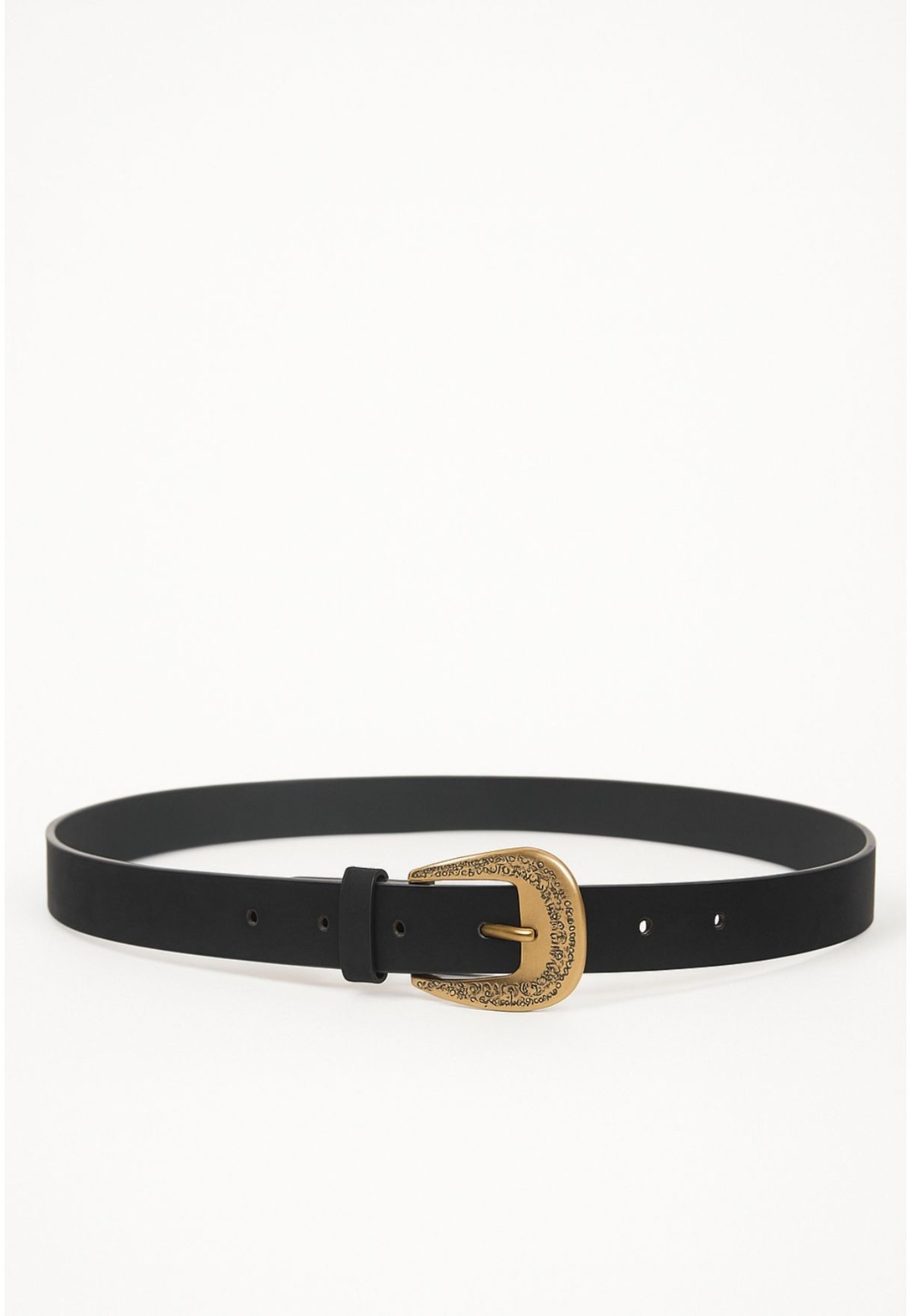 Cinturón negro mujer con hebilla dorada grabada 3cm | Bluwer
