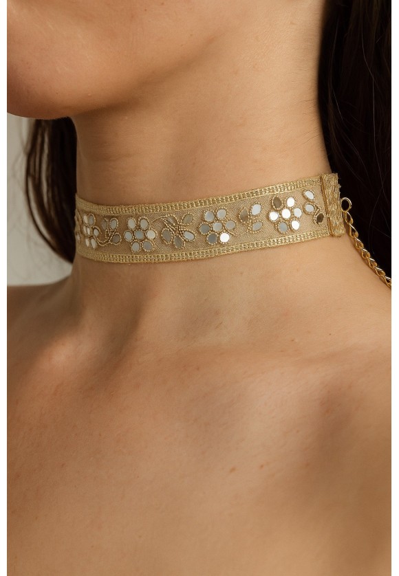 Choker artesanal dorado con espejitos hecho a mano | Bluwer
