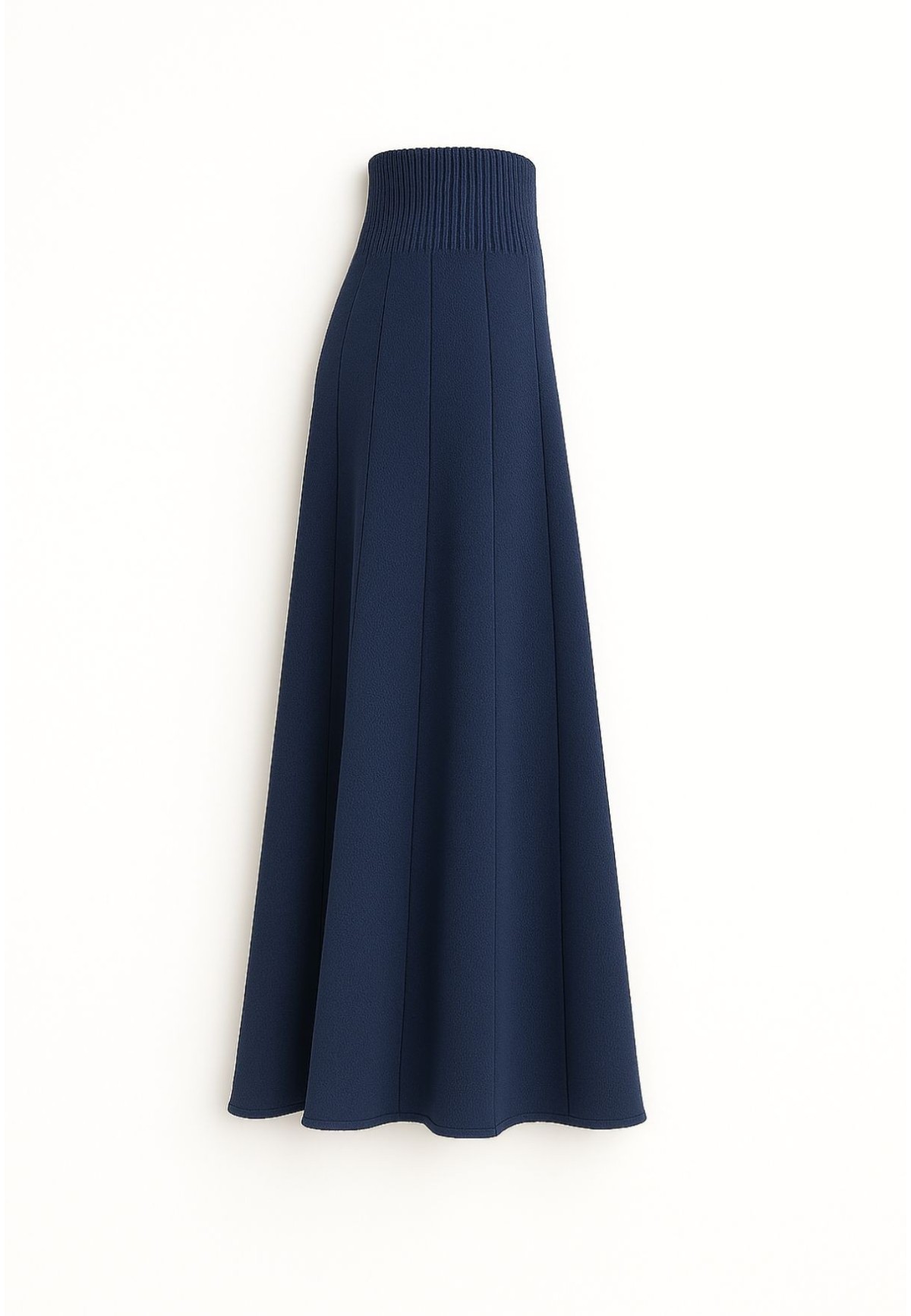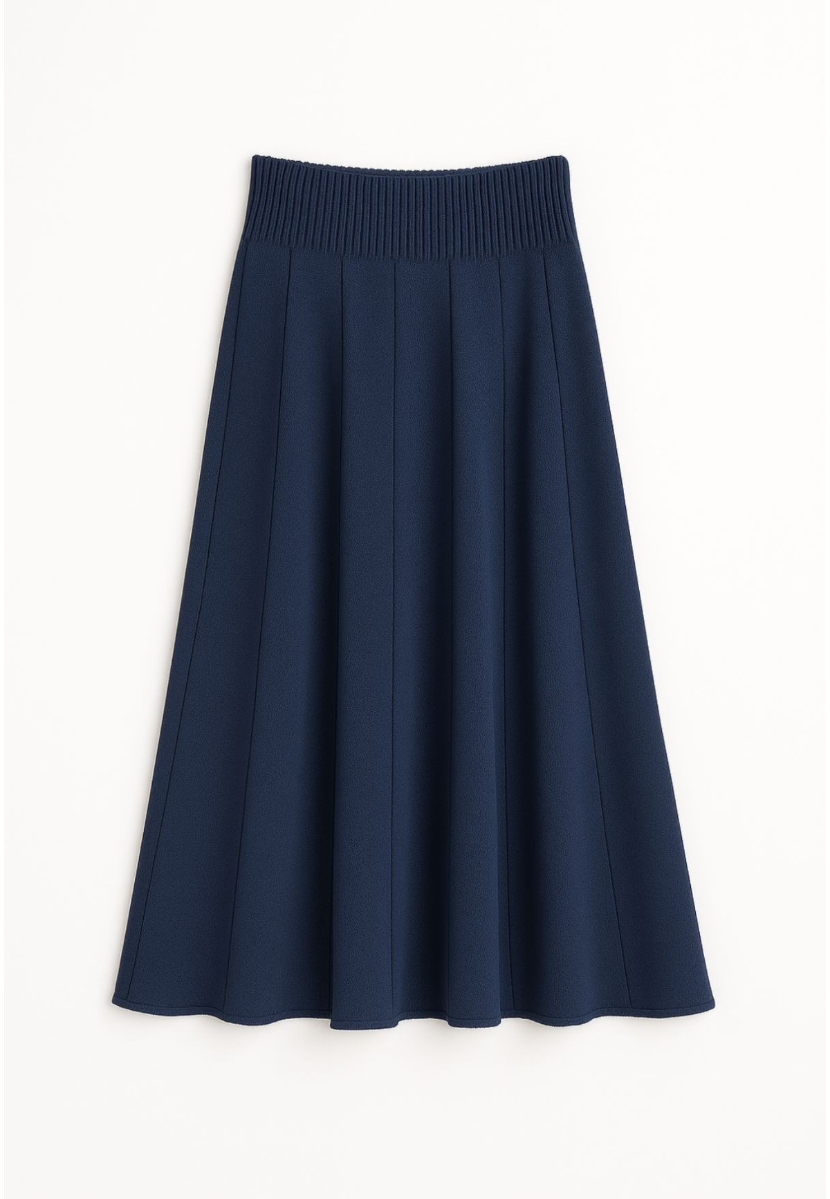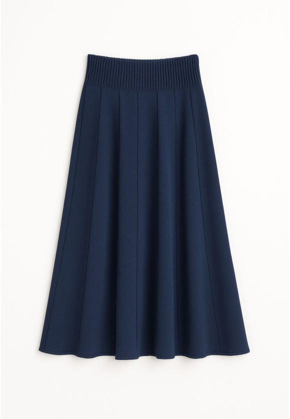 Falda de punto midi azul marino con vuelo elegante | Bluwer