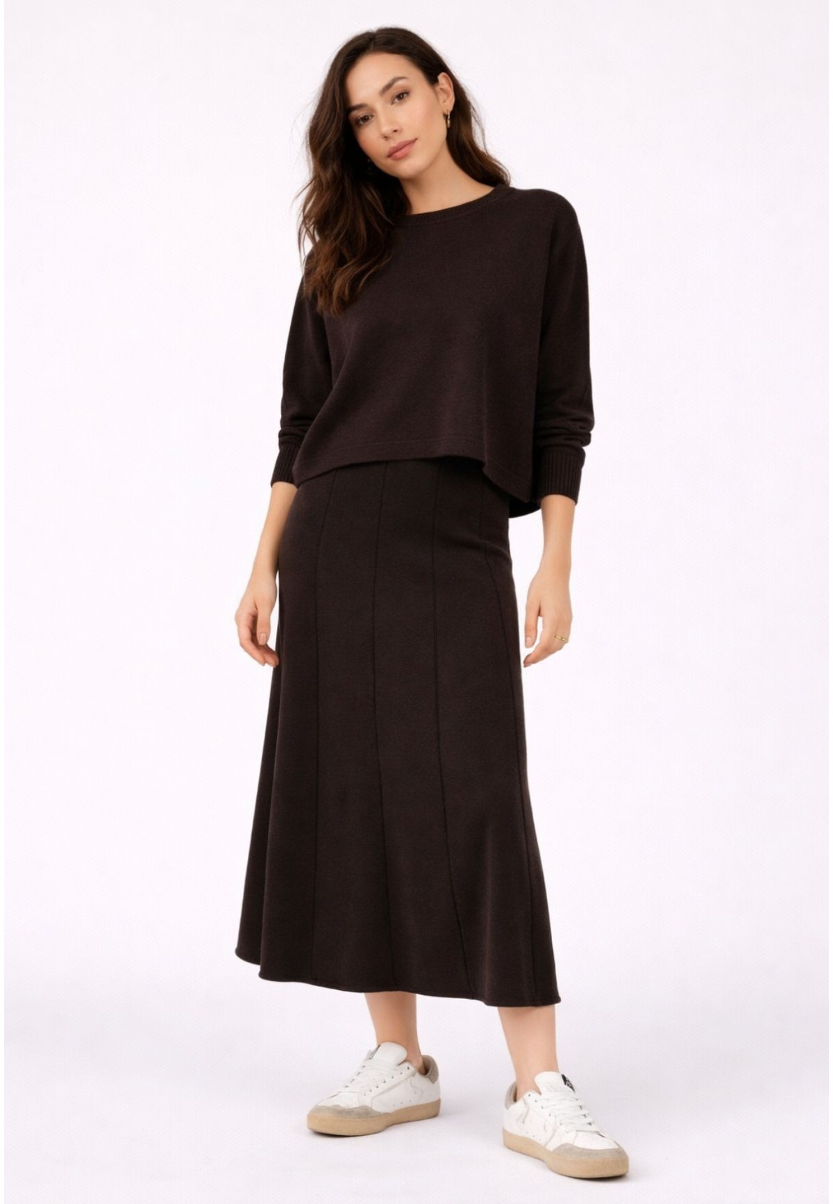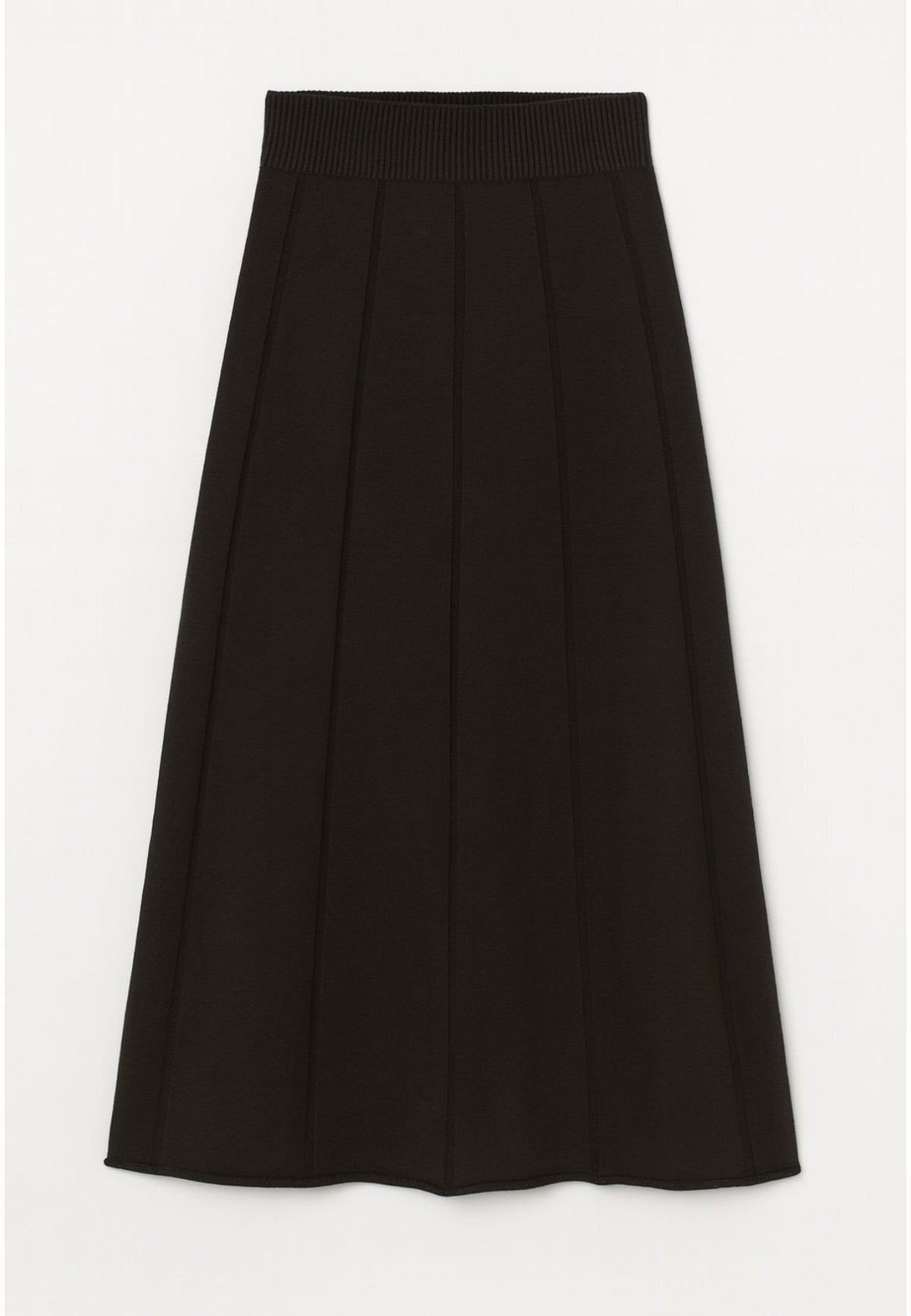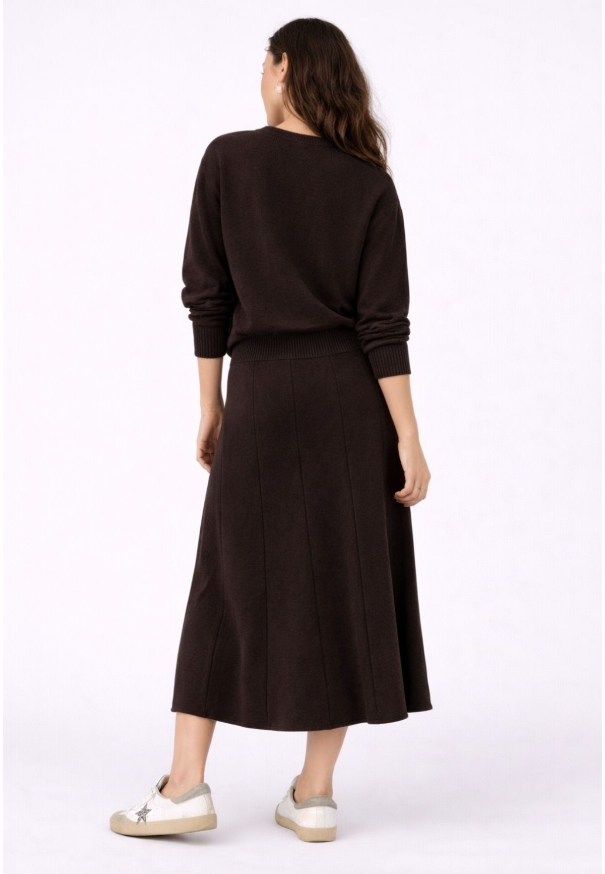 Falda midi de punto chocolate para look diario cómodo y favorecedor
