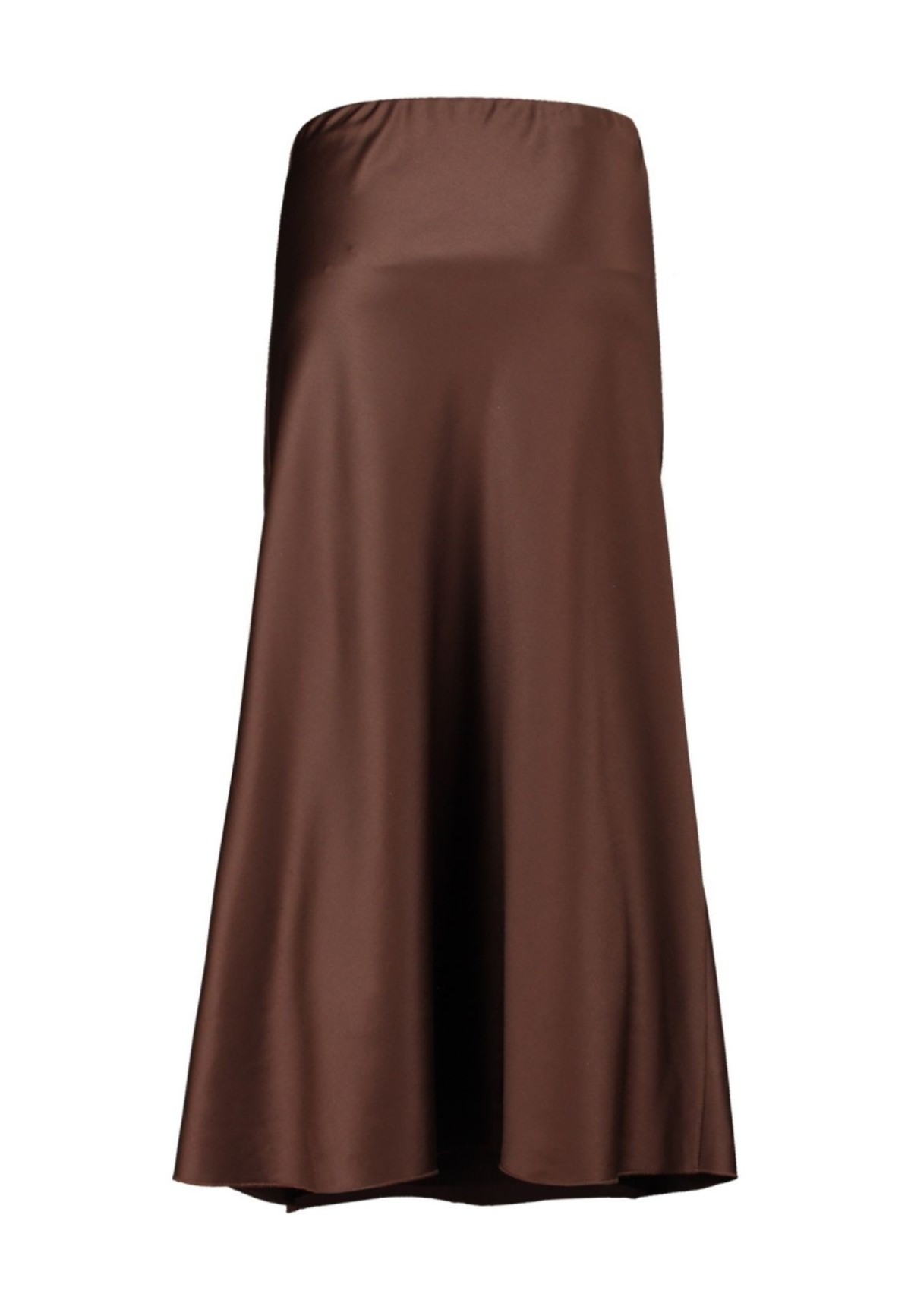 Gracias a su corte midi, estiliza la silueta y se adapta tanto a looks de día como de noche. Esta falda satinada en color marrón chocolate es perfecta para: