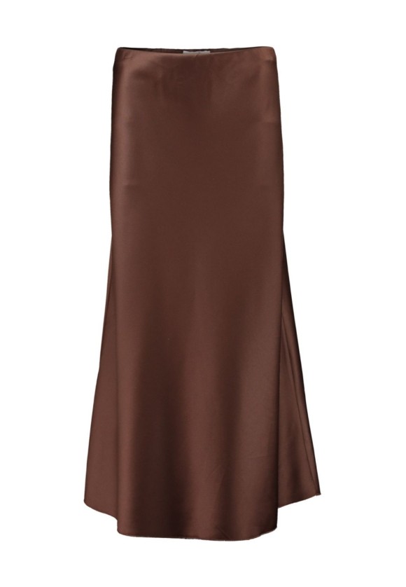 Falda satinada chocolate midi, elegante y versátil para oficina, eventos o looks de invitada.