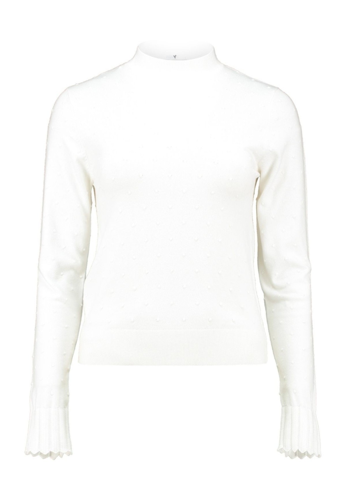 Jersey blanco de punto fino con lunares bordados |  Bluwer