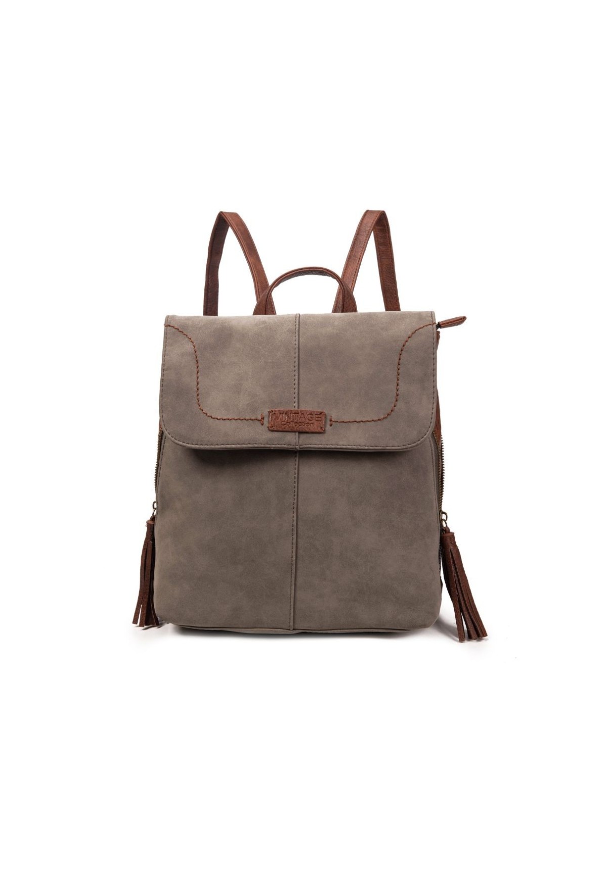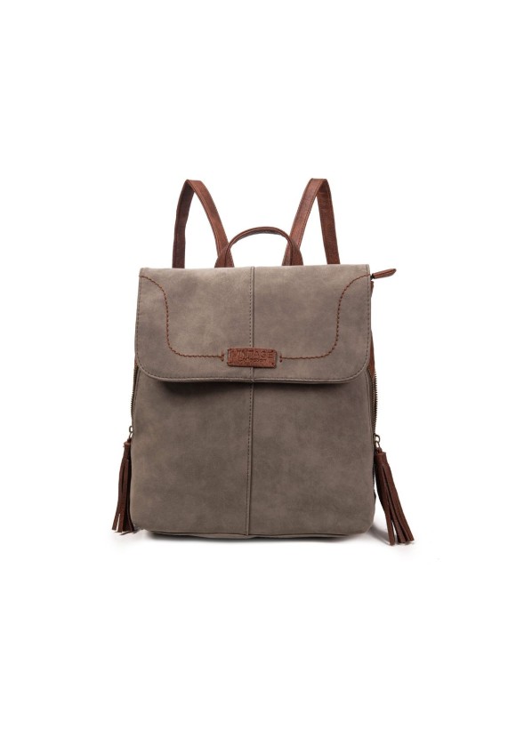 Mochila gris efecto ante con cremalleras laterales y solapa