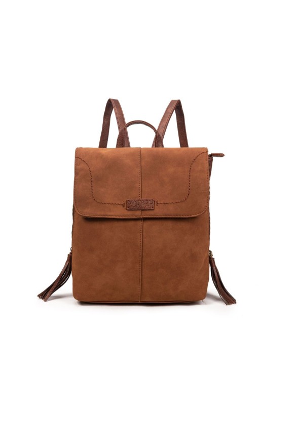 Mochila marrón efecto ante con cremalleras laterales y solapa | Bluwer