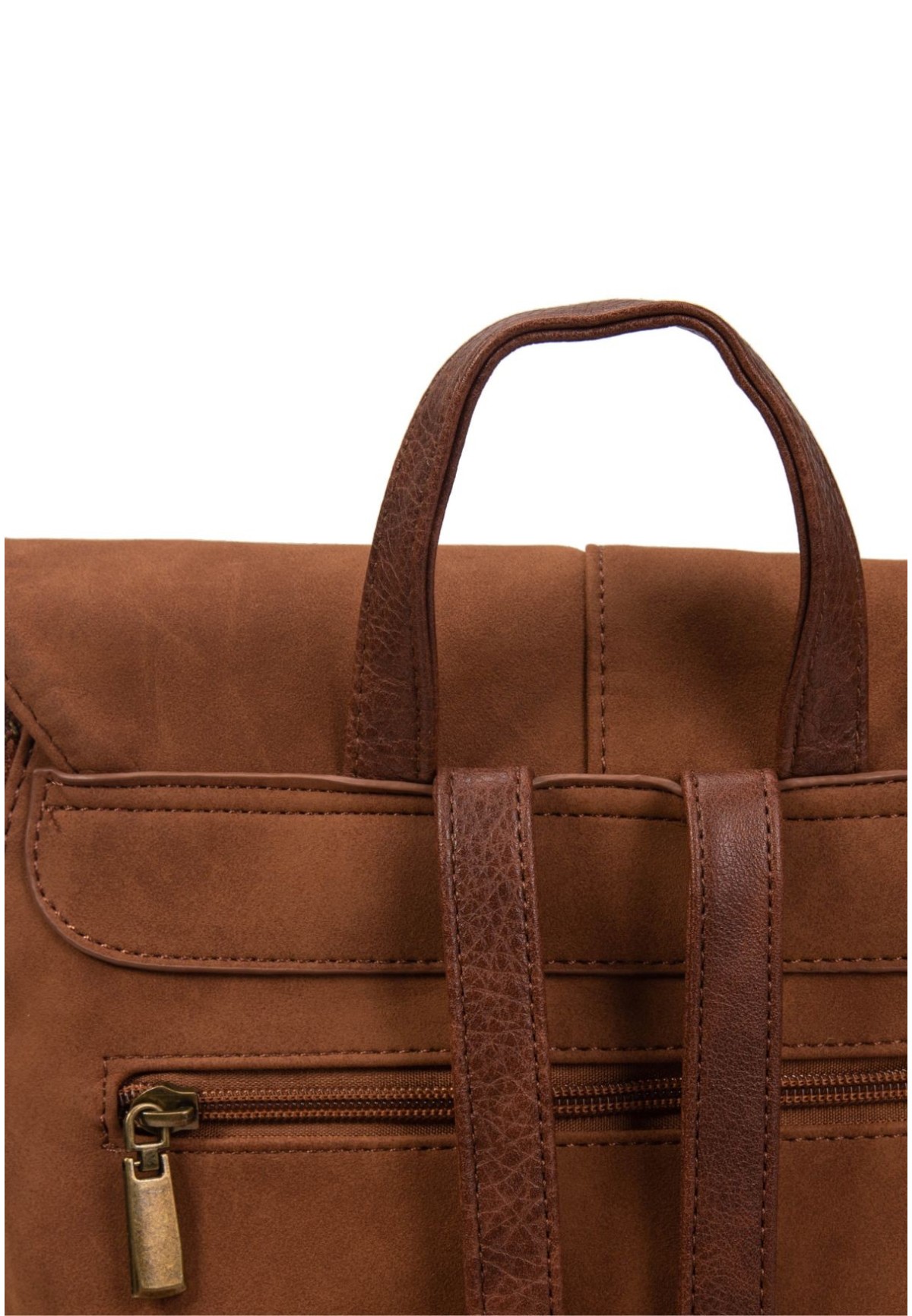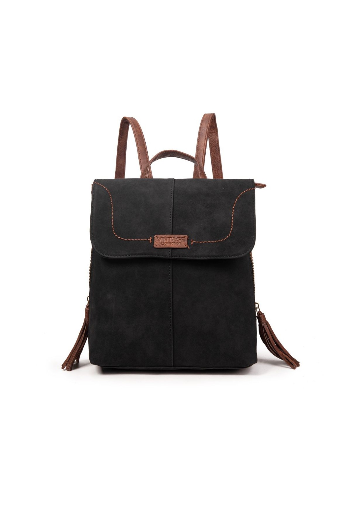 Mochila negra efecto ante con cremalleras laterales y solapa