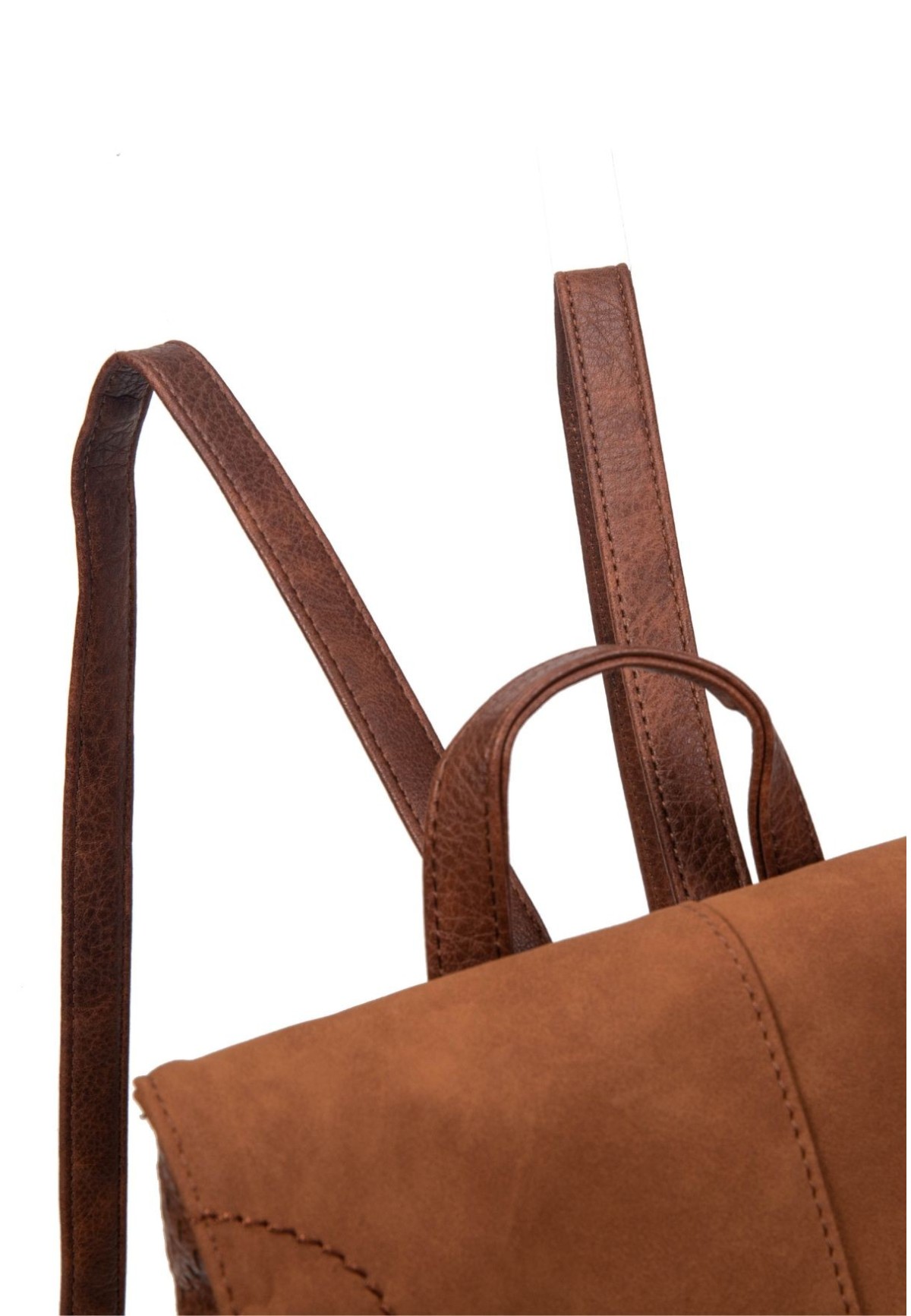 Fabricada en efecto ante suave con acabado mate, destaca por los detalles en costuras vistas y borlas laterales, que aportan un aire boho y urbano a partes iguales. Sus asas regulables garantizan comodidad, mientras que el asa superior la hace práctica para llevar en la mano o colgar fácilmente.