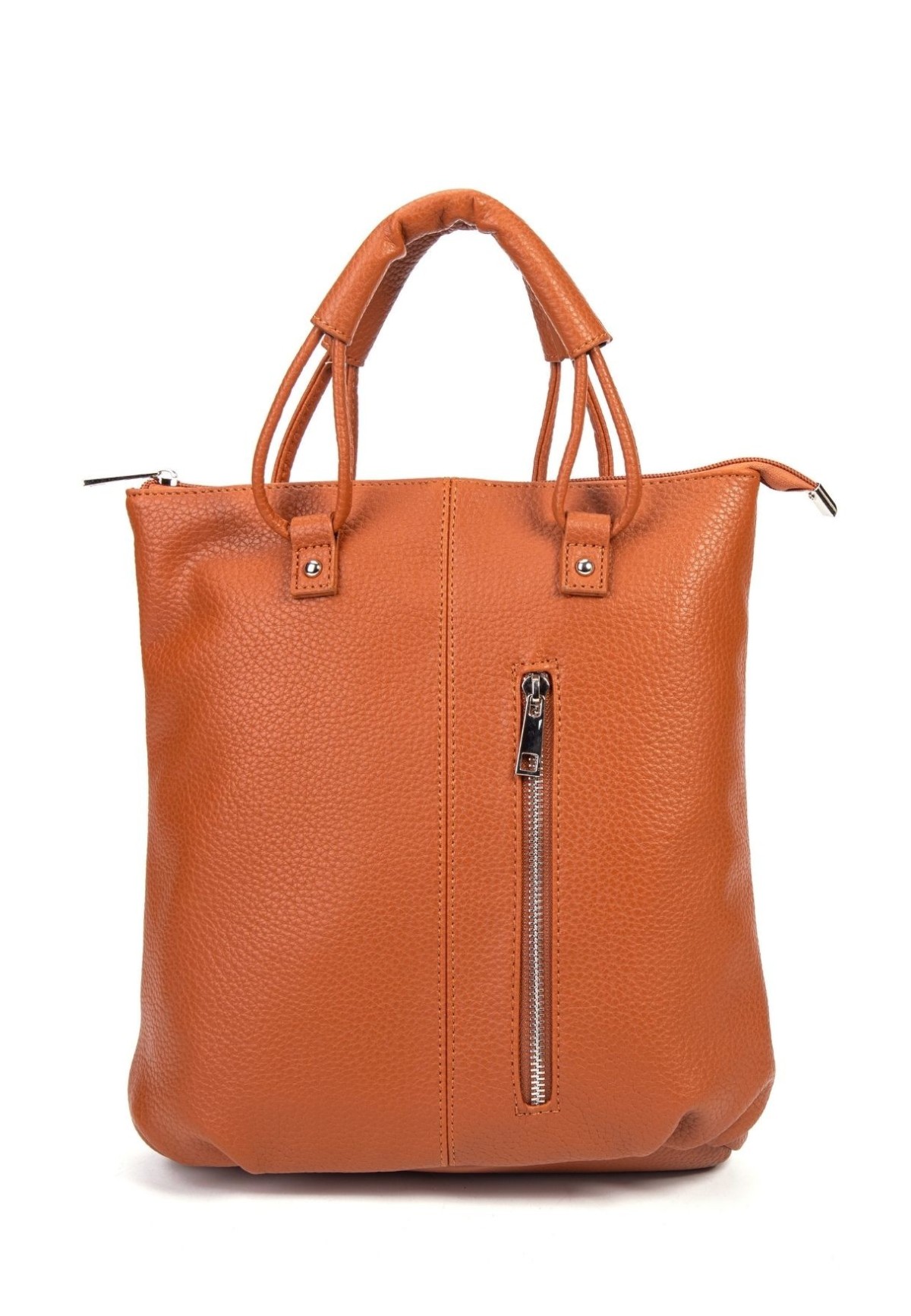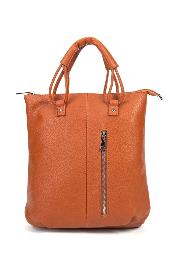 Mochila shopper camel polipiel suave con asas y cremalleras | Bluwer