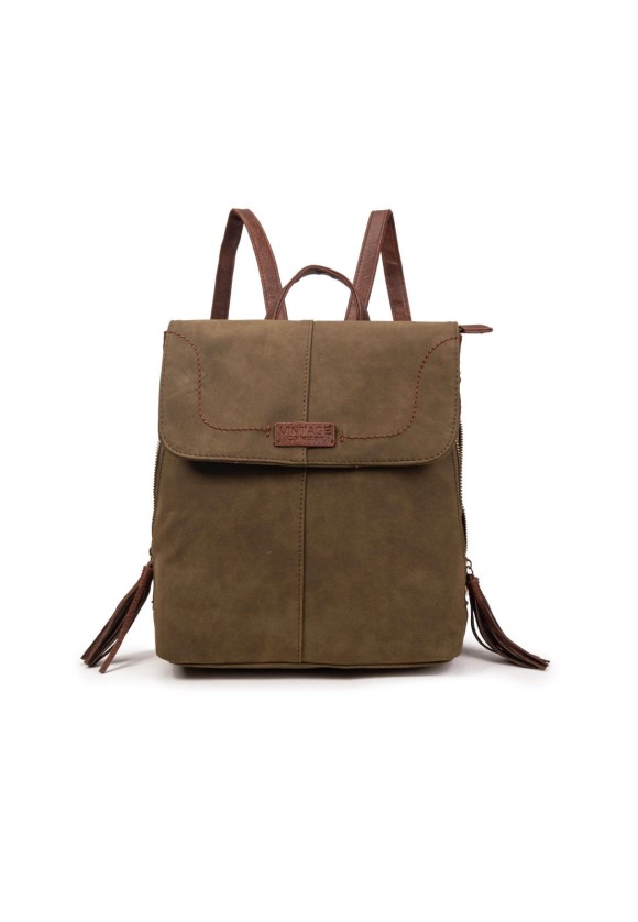 Mochila verde efecto ante con cremalleras laterales y solapa | Bluwer