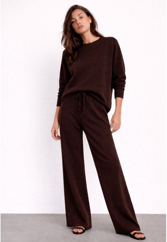 Pantalón de punto marrón suave con caída recta y cintura elástica