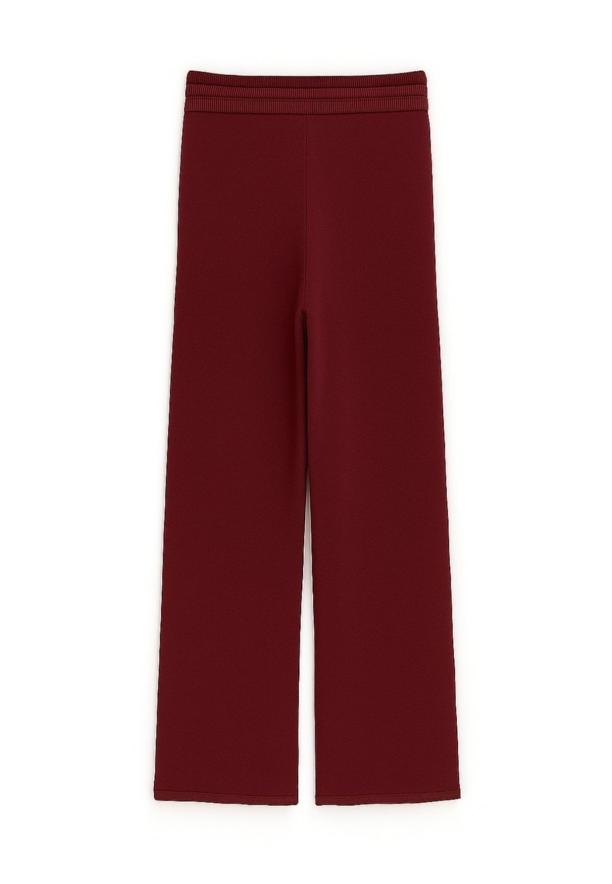 Este pantalón de punto en color vino es la definición de comodidad sin renunciar al estilo.