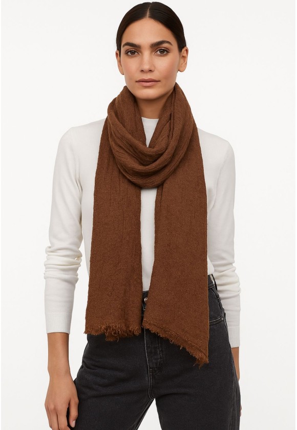 panuelo-marron-chocolate-lana-viscosa-textura-arrugada-bluwer
