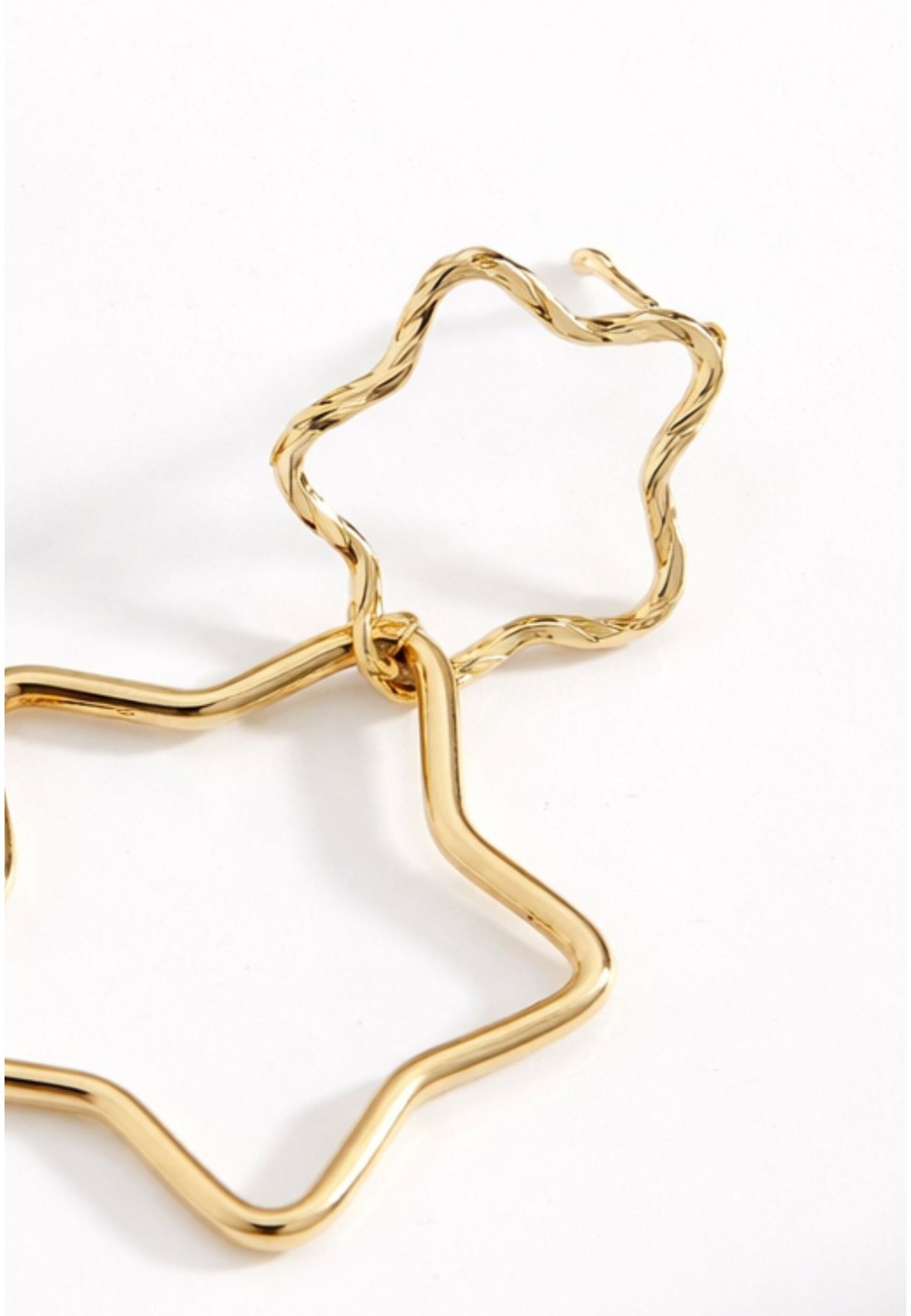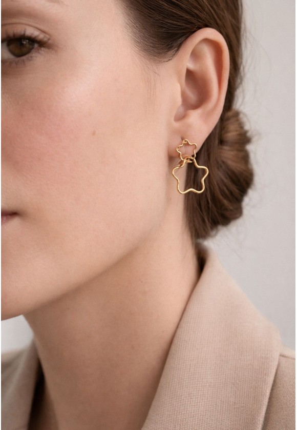 Estos pendientes dorados con forma de estrella ondulada son ese detalle especial que transforma cualquier look sin esfuerzo. Su diseño orgánico, ligero y luminoso aporta un punto moderno y elegante que funciona tanto para el día a día como para ocasiones más especiales.
