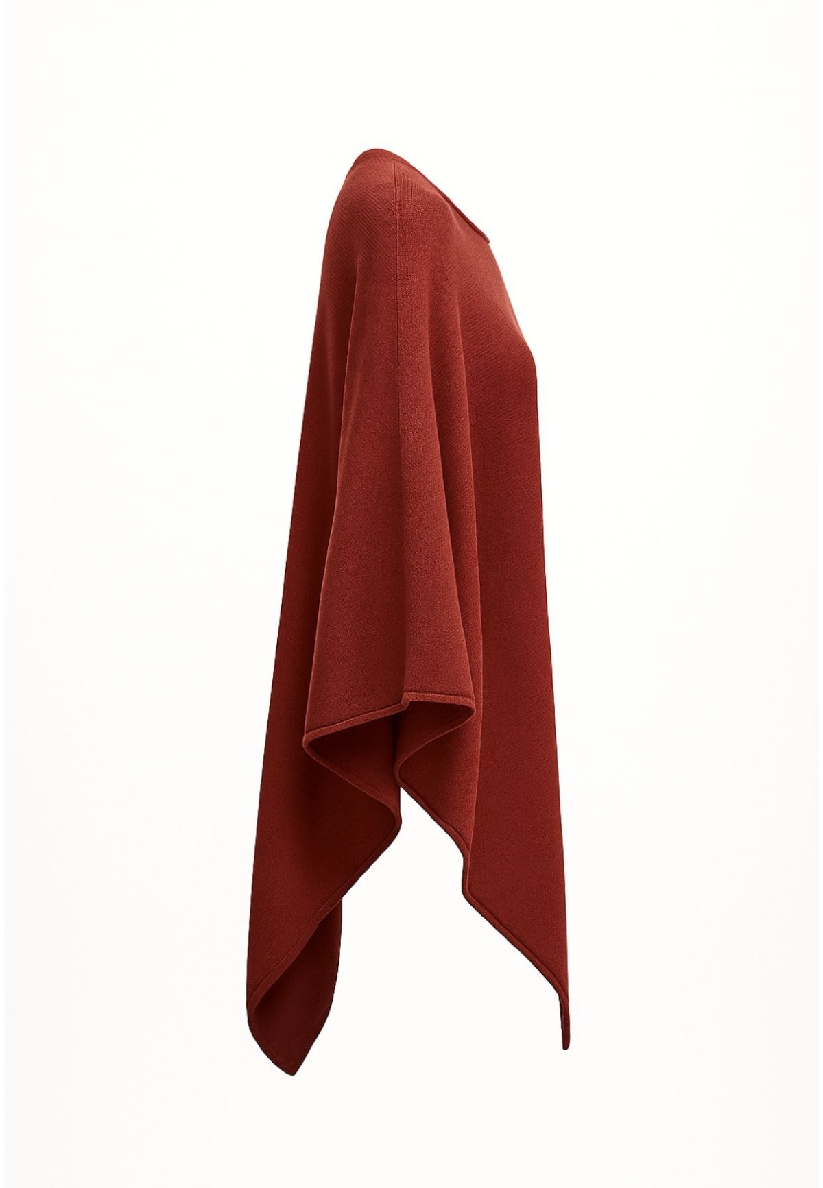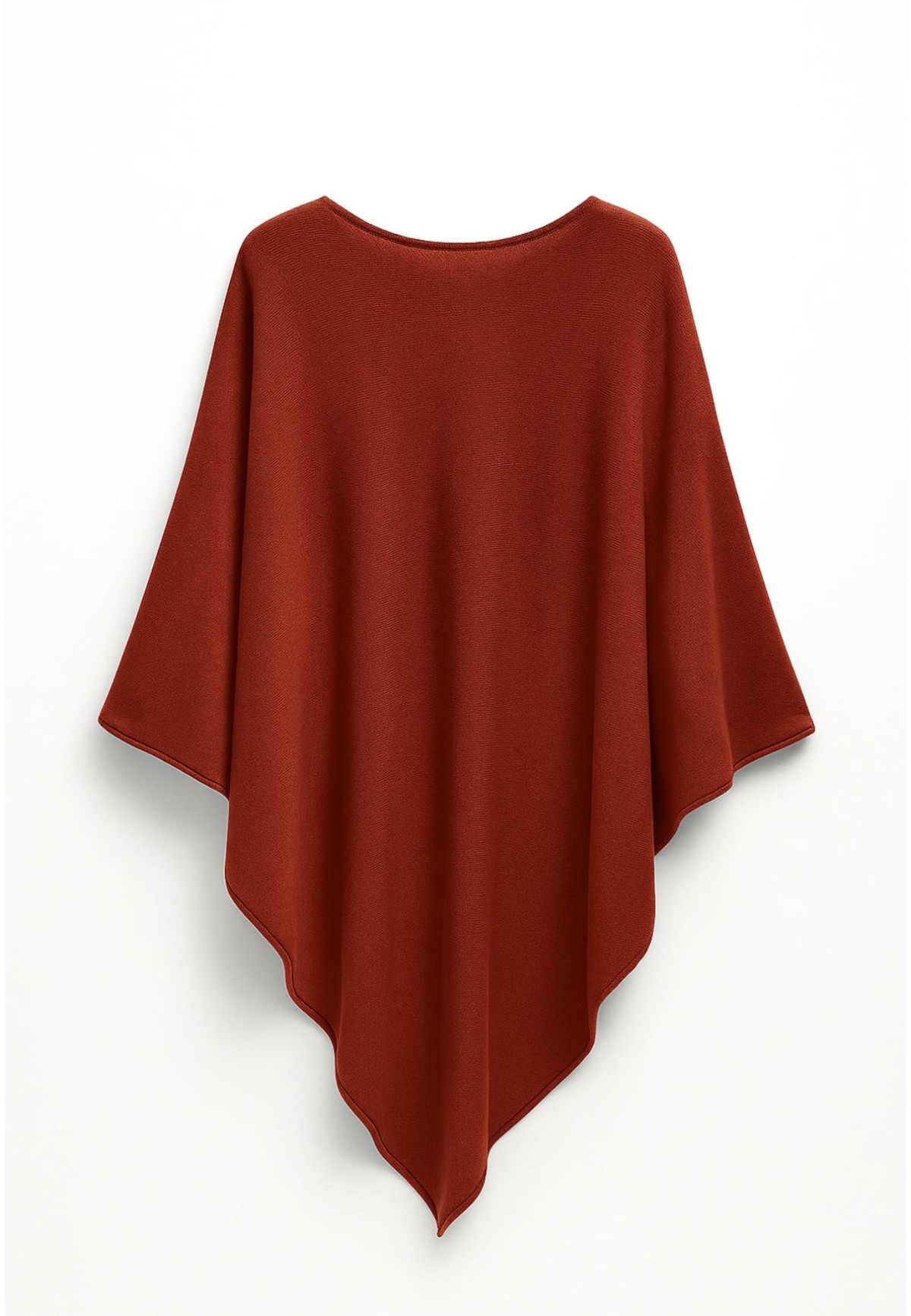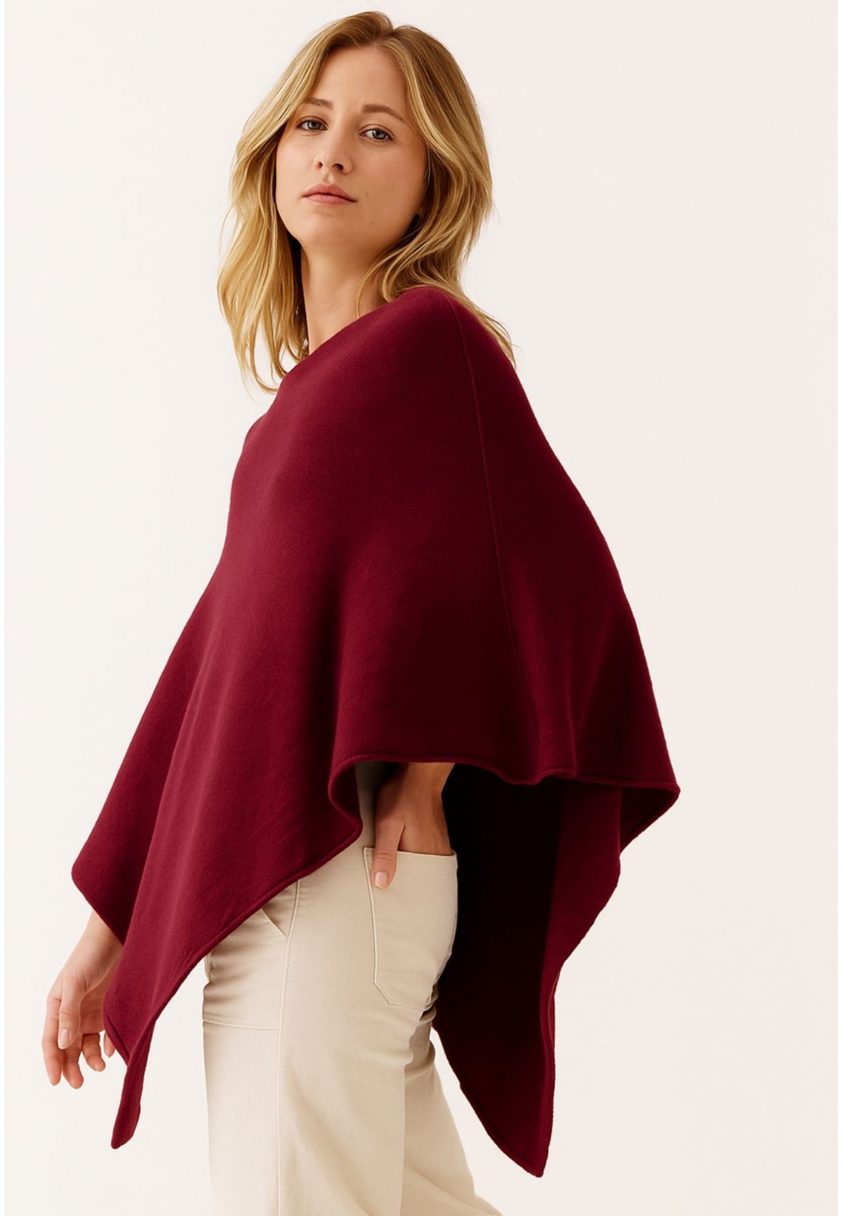 Esta capa en color vino es la prenda que transforma cualquier look con cero esfuerzo. Su cuello barco y su silueta amplia envuelven la figura de manera suave, favorecedora y con un toque elegante sin complicaciones.