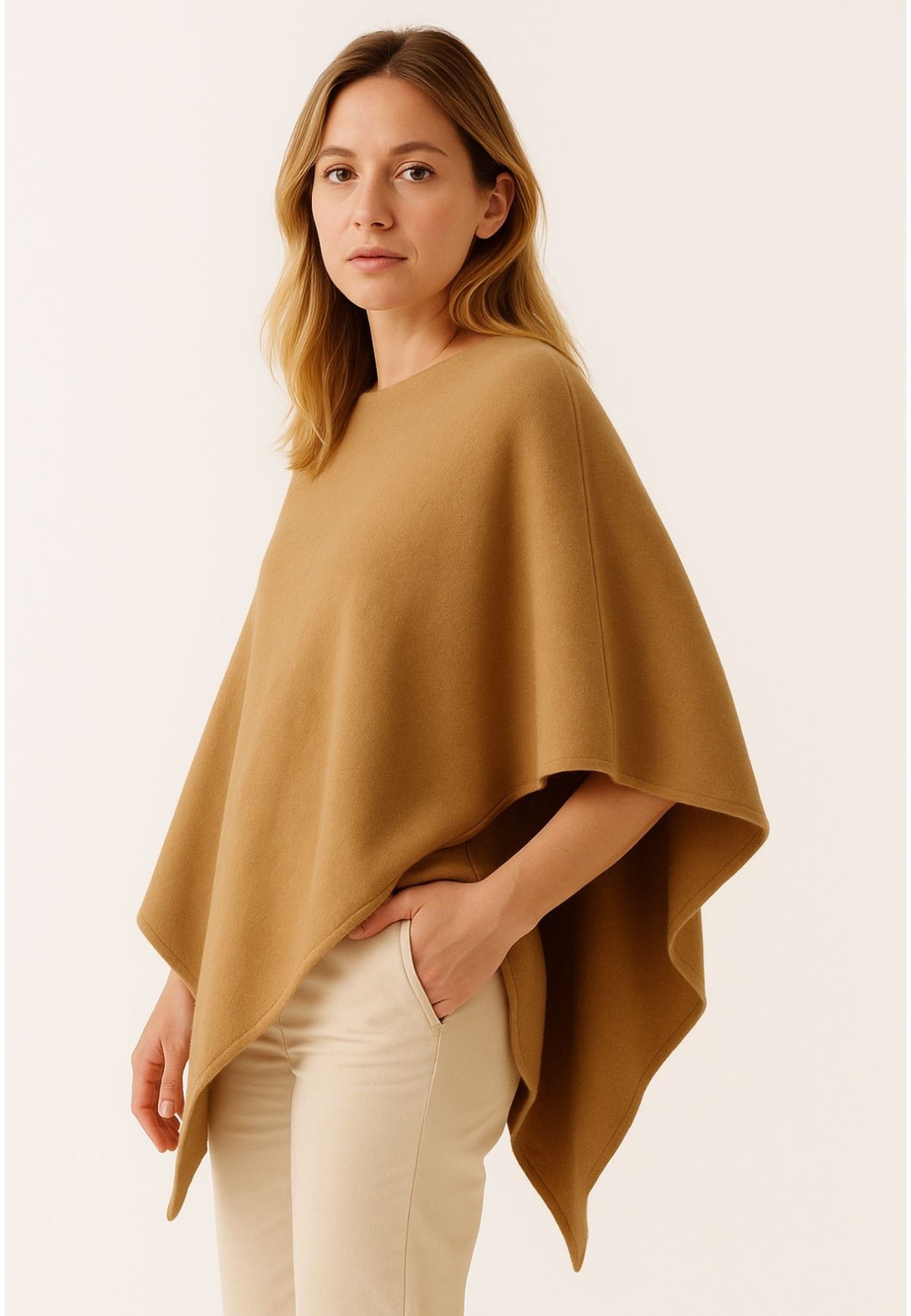 Capa de punto camel cuello barco amplia | Bluwer