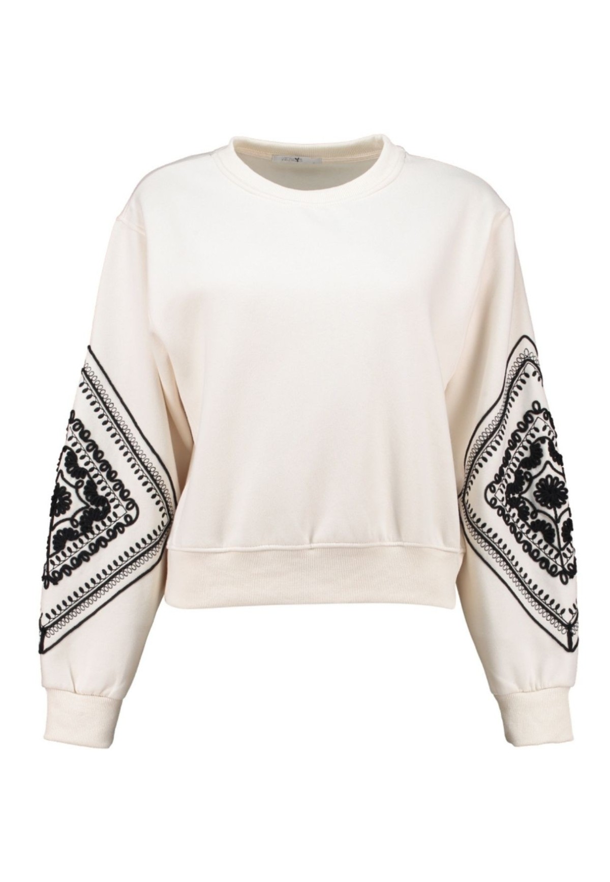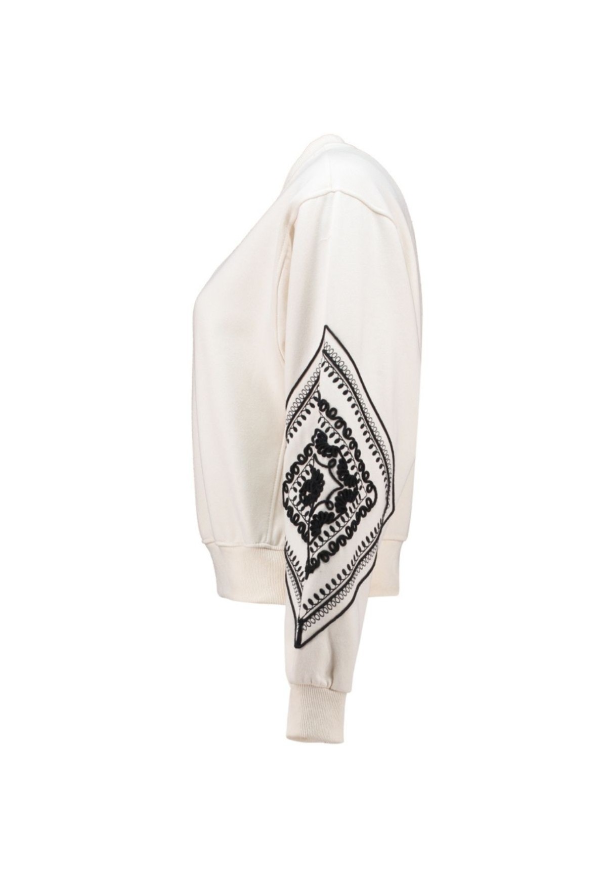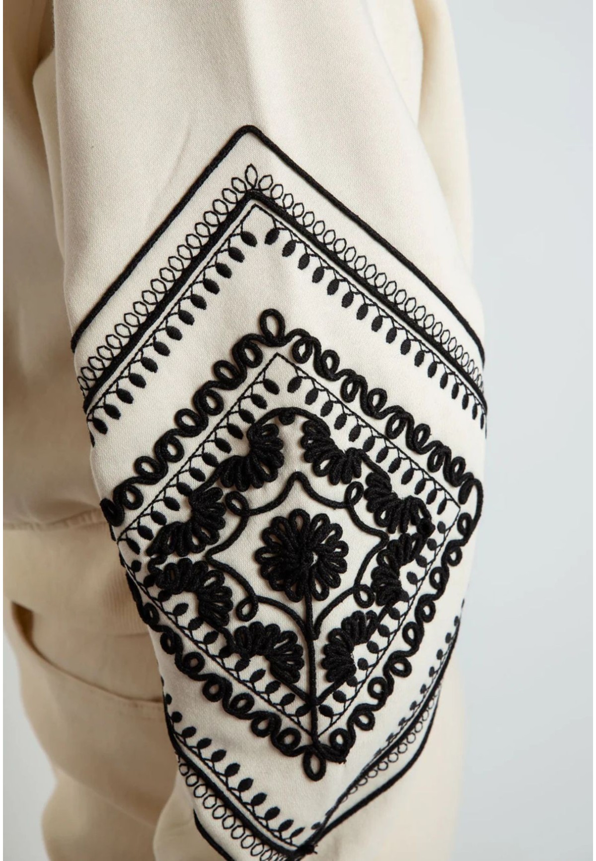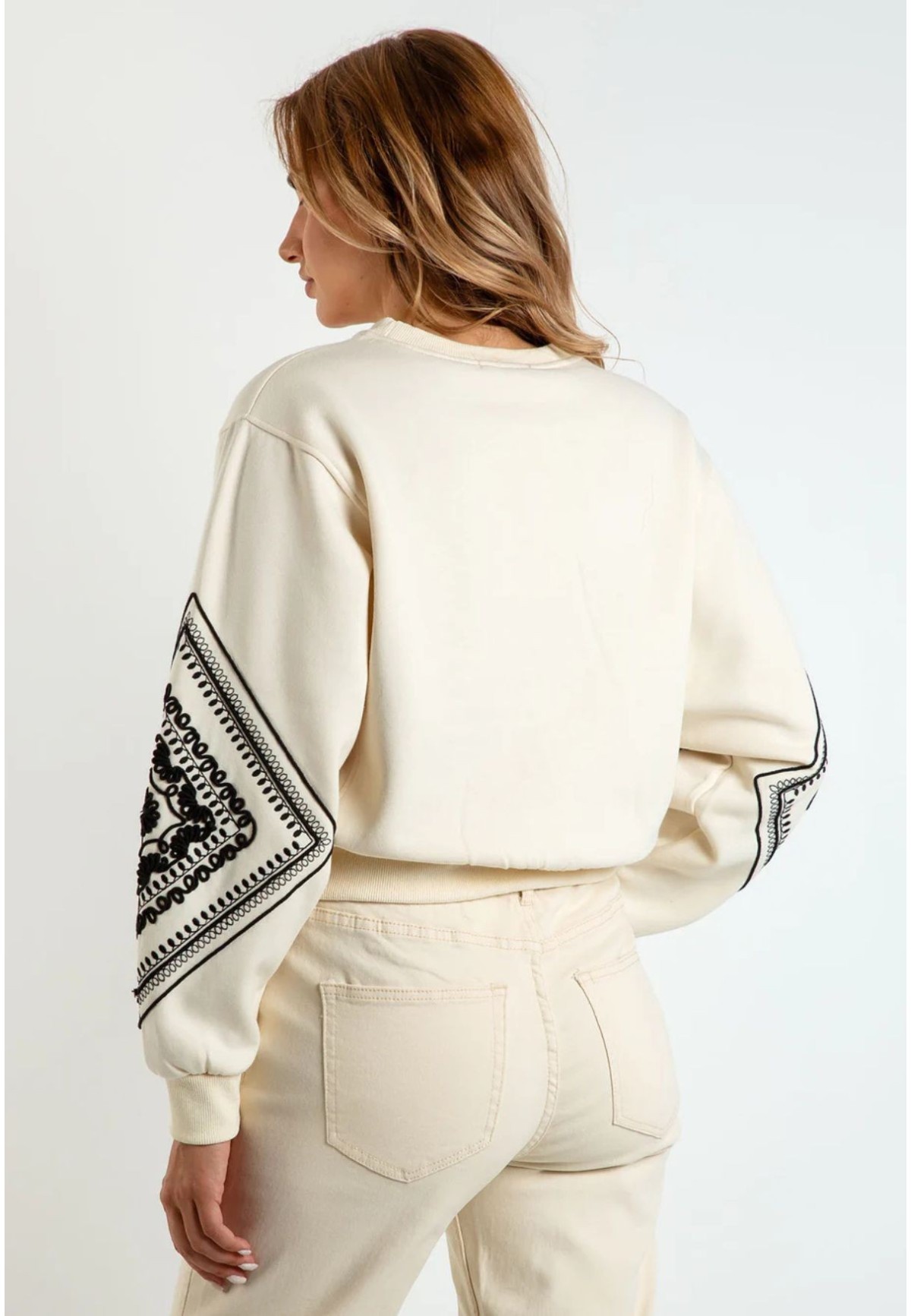 Sudadera blanca bordada con mangas de inspiración boho en tallas XS a XXL.