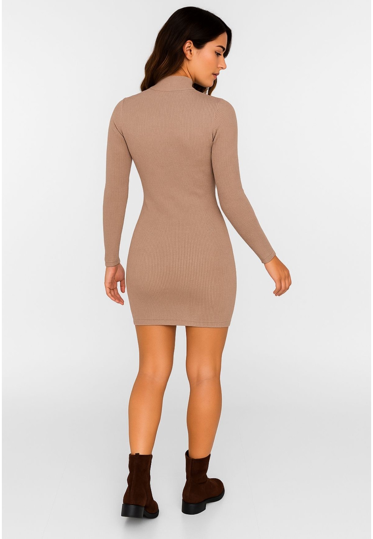Vestido de punto canalé ajustado con cuello alto – manga larga