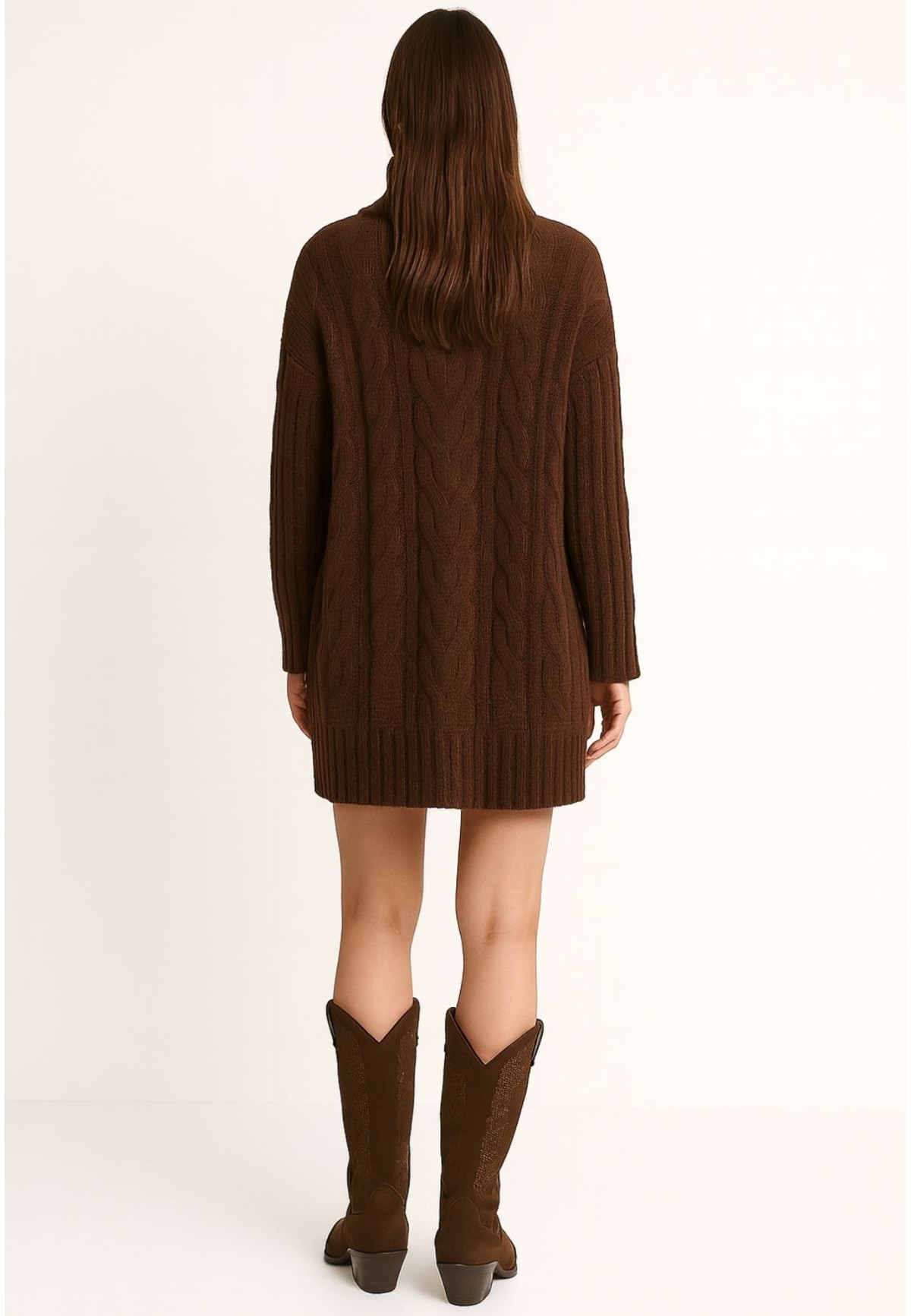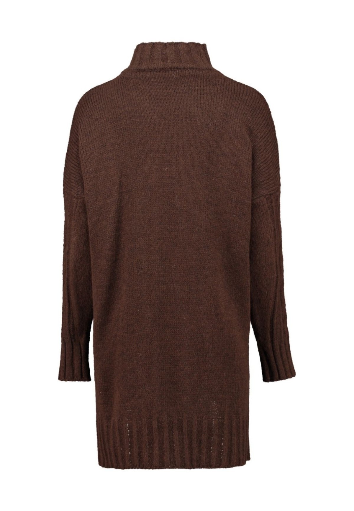 Vestido marrón de punto trenzado con cuello vuelto | Bluwer