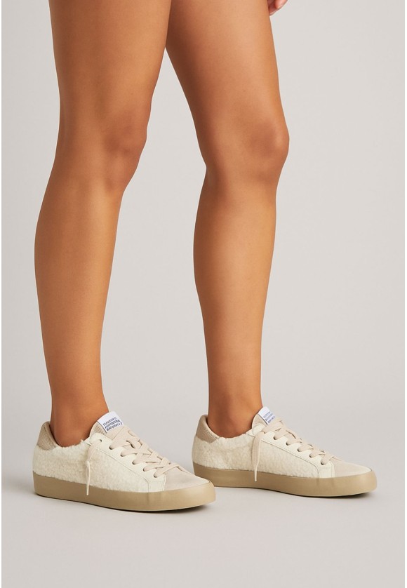 Zapatillas deportivas blancas con borreguito y detalle dorado